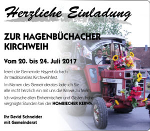 Im Namen der Gemeinde lade ich Sie herzlichst ein, unser Kirchweihfest zu besuchen.