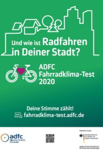 Der Fahrradklima-Test ist das Stimmungsbarometer der Radfahrerinnen und Radfahrer vor Ort. Mit wenig Aufwand (ca. 10 Minuten) können Radfahrerinnen und Radfahrer als „Alltagsexperten“ die Radfahrsituation vor Ort bewerten und so ein wichtiges Feedback an Politik und Verwaltung abgeben. Der ADFC-Fahrradklima-Test ist eine der weltweit größten Umfragen dieser Art. Er wird vom Bundesministerium für Verkehr und digitale Infrastruktur (BMVI) gefördert. Weitere Informationen erhalten Sie unter: www.fahrradklima-test.adfc.de