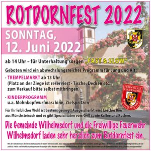 Herzliche Einladung zum Rotdornfest Zeige grösseres Bild foertsch2022-06-10T07:19:00+02:0010. Juni 2022|Veranstaltungen, Wilhelmsdorf| Teile diesen Artikel FacebookXWhatsAppE-Mail